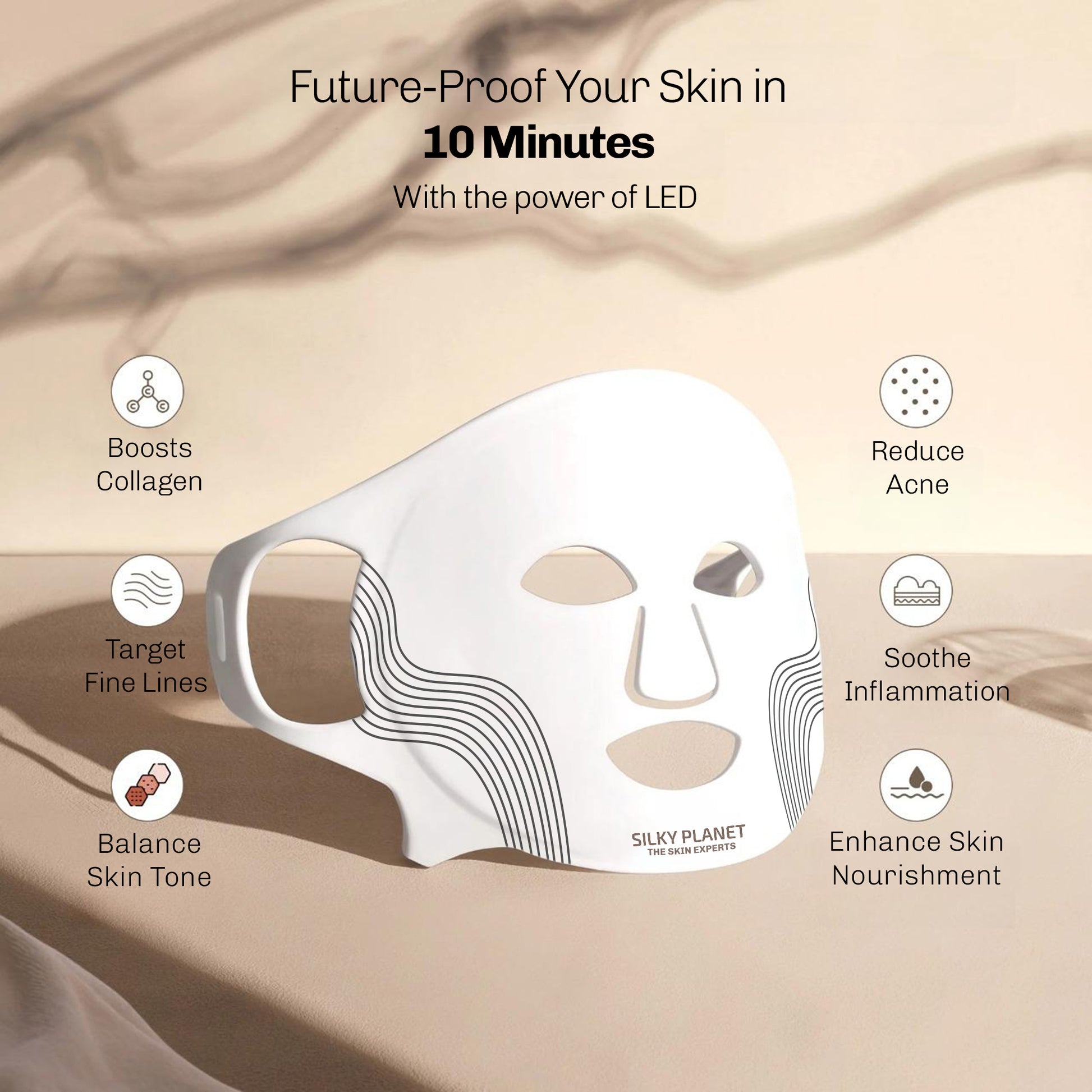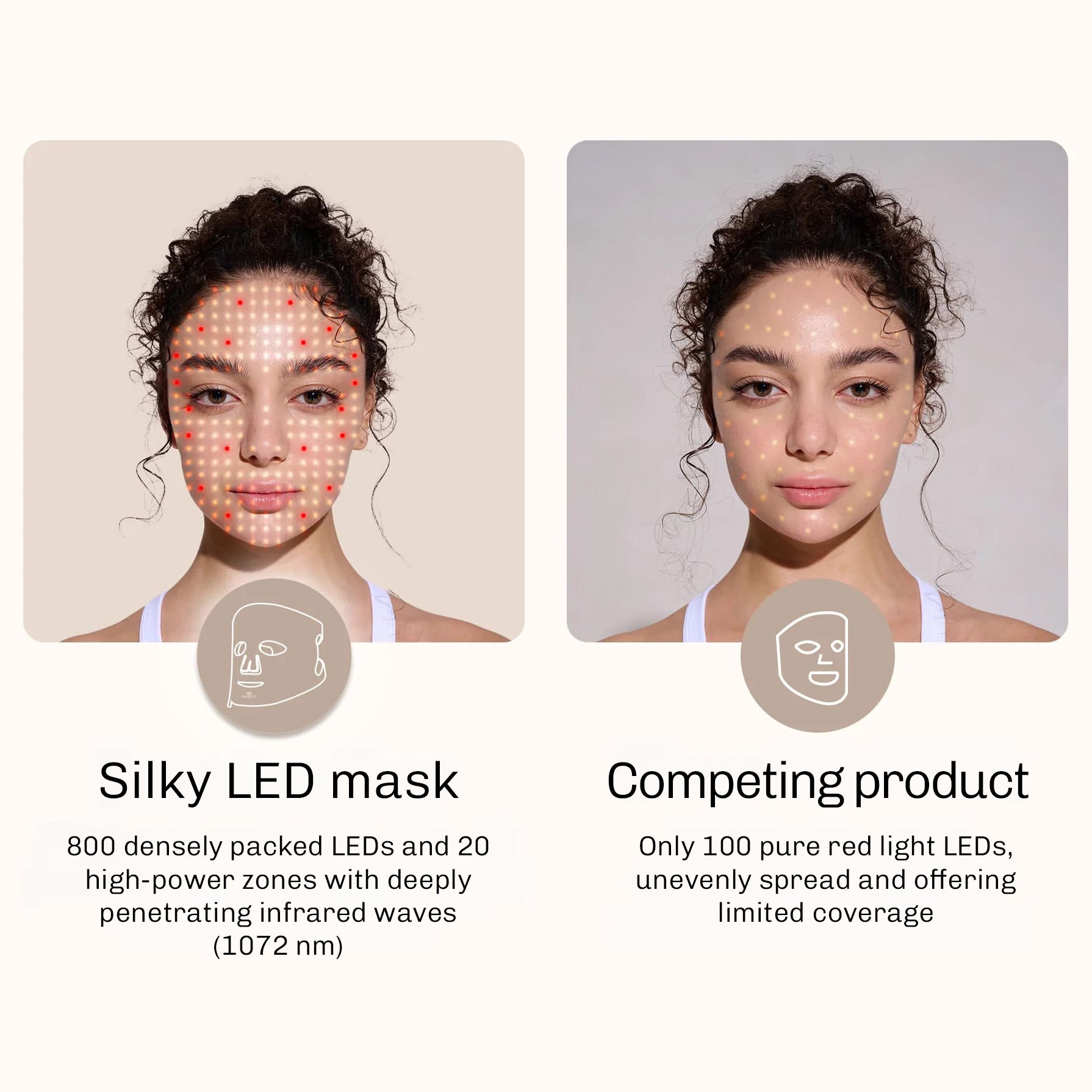The LED light therapy mask was developed to take skincare to the next level. With the combination of three precisely calibrated wavelengths such as red light, near-infrared and deep near-infrared, it specifically supports the skin’s natural regeneration. The light impulses penetrate deep into the skin layers, promote collagen production, improve elasticity and visibly reduce fine lines and wrinkles. The soft, flexible silicone adapts perfectly to the shape of the face and ensures even light distribution with maximum comfort. The application takes only 10 minutes per day and is completely painless. The scope of delivery includes the white mask, a USB-C charging cable, an adjustable strap for secure hold, a remote control with clip, and eye protection for relaxed treatments. Ideal for anyone who wants to visibly tighten their skin and permanently improve their complexion, all from the comfort of their own home.